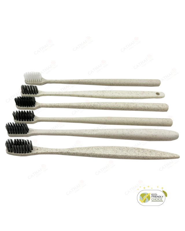One of the most exciting developments in our product line is the use of hybrid materials made from natural agricultural waste like wheat straw or corn starch blended with polypropylene (PP)or polyethylene (PE) plastic. These innovative materials are being used in our toothbrushes, combs, razors, and other personal care amenities — delivering both durability and a measurable step toward sustainability.